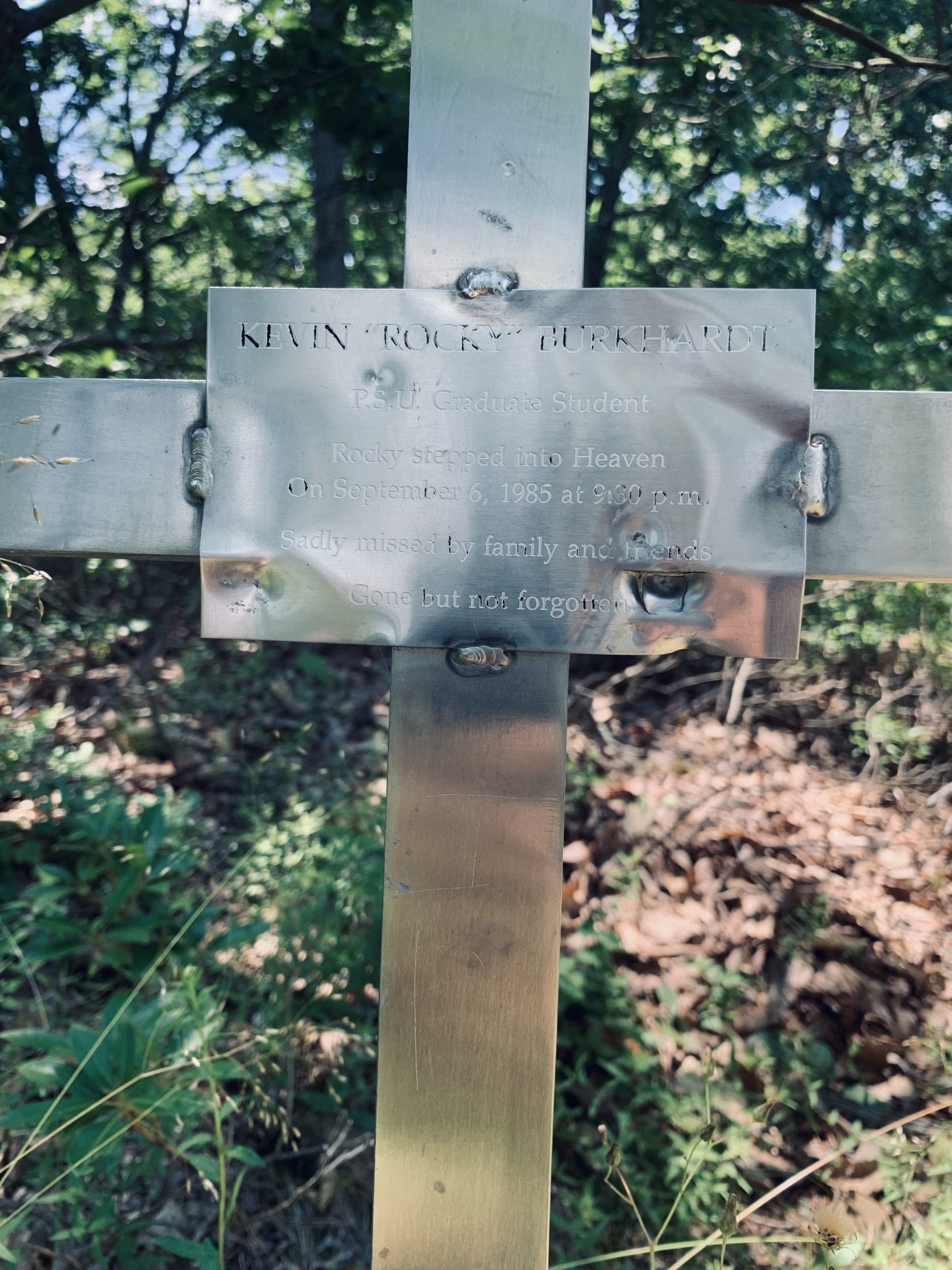 At one scenic overlook, a memorial to someone who leapt to his death. I actually remember this. I was a Penn State undergrad at the time.