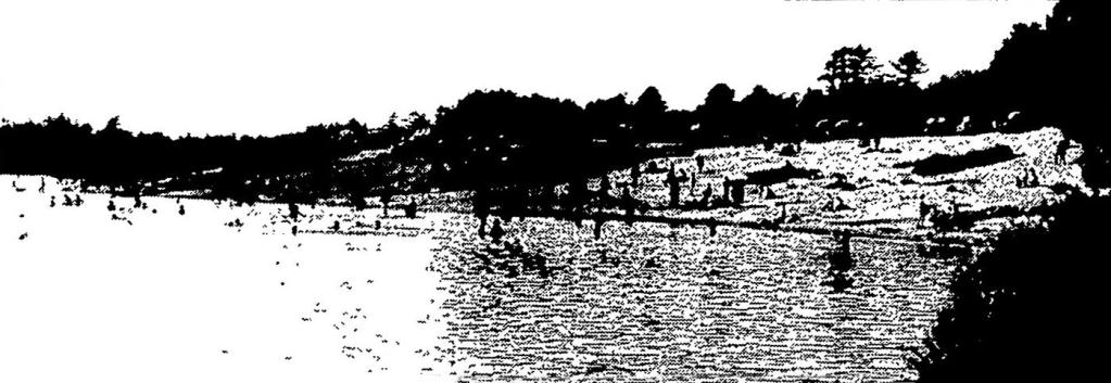 WILLETT POND BEACH, on which a swimming ban was clamped this week when the property was posted by the Board of Health. Photo was taken last Sunday when crowds of out-of-towners, as well as local residents, flocked to the popular Norwood resort as they have been doing for years past. (Surette Photo)
