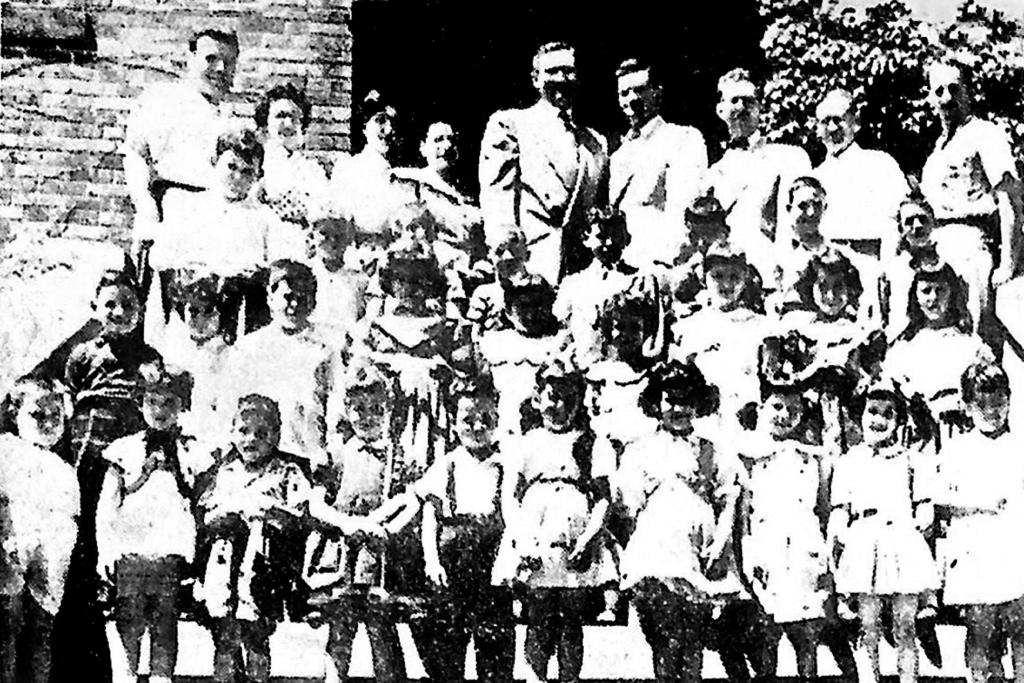PROMOTED — The members of the Sunday School classes of Temple Shaare Tefilah held their promotion exercises last Sunday and were given their certificates. Front row, left to right: Joel Hershman, Judy Hershman, Michael Wigon, Susan Saver, Marc Orent, Phyllis Cushing, Linda Rosen, Carol Miller, Jolyn Greene, and Carol Burtman. Second row, left to right: Freddy Adelson, Tanya Maxwell (guest), Stuart Wigon, Sandra Borr, Arlene Alter, Lois Ofstein, Patricia Greene, Susan Klein, and Maxine Cushing. Third row, left to right: Marshall Rittenberg, Stephen Rittenberg, Chucky Chaplan, Nason Kaplan, Harold Rubin, Warren Rubin, Sheldon Small, and Jerry Small. Rear row, left to right, arc the Sunday School officials: Samuel Wigon, Mrs. Wigon, Alice Blumenthal, Mrs. H. Rubin, Dr, Max Hershman, Malcolm Orent, Samuel Spector, Herbert Taube, and Carl Burtman. (McLean Photo)