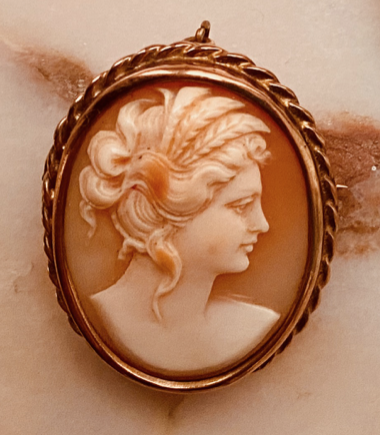 My mother's cameo brooch can also be worn as a pendant. In the 1980s I used to wear it as a brooch high on the neck of my buttoned-up blouse but now it would probably feel like I was being strangled.