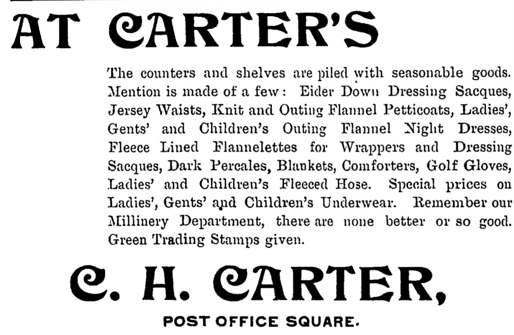 A. T. Harriott has some interesting little pieces of coal in his window which are labeled, " Anthracitus Penn-sylvanus, commonly known as black diamonds." The card goes on to relate that this substance was originally found in Pennsylvania but specimens are exceedingly rare and are now valued at $10,000 per carat. They contain 94 percent, of carbon and were once so plentiful that they were used for fuel by the early residents of America.