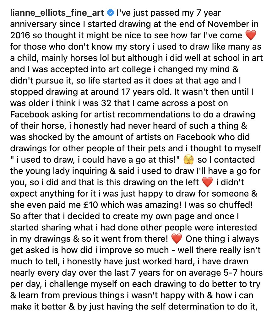 I have always found the artistic progress of Lianne Elliot fascinating. She was always good, but now her skill is astonishing. You can see that she loves animals, particularly in the way she can recreate their very essence. The souls in their eyes always get me.