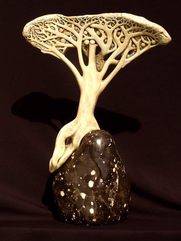 Carl works with found objects such as rock, bone (from everything from giraffe to whales), and driftwood. He finds them on walks, on holidays, on trips. The final piece takes its form based on the found object. I think he is supremely talented.